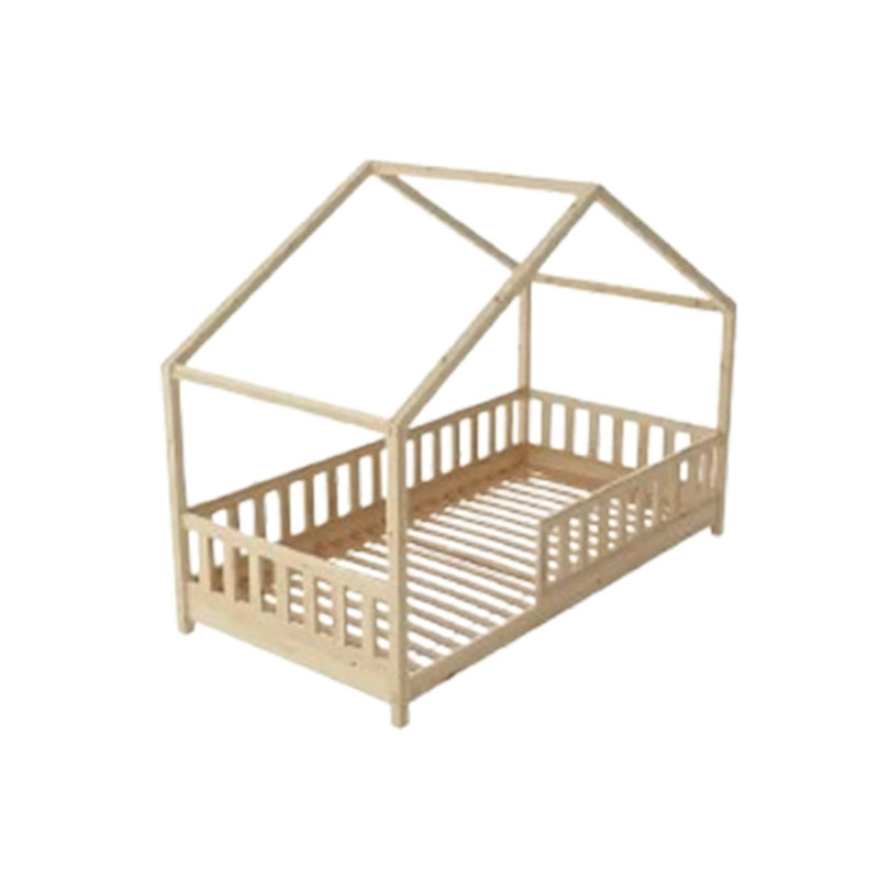 Clearance Sale Crazy Pine Cabin Bed 160x80 cm – Natural Wood Children's Bed with Barrier – Montessori Floor Bed with Height-Adjustable Legs and Removable Barrier - Crazy House