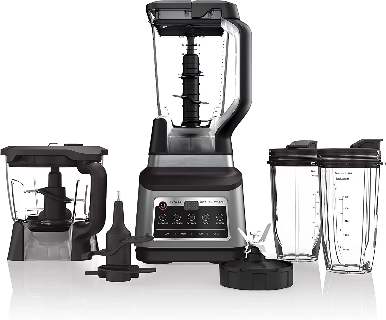 Mega Kitchen System, 72 oz. Pitcher, 8-Cup Food Processor, 16 oz. Single Serve Cup, 1500-Watt, Black